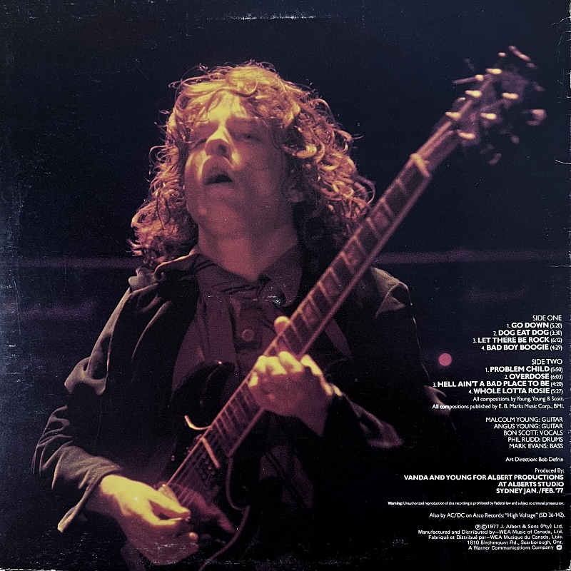 Товар Виниловая пластинка Исполнитель AC/DC Наименование Let There Be Rock Каталожный номер SD 36-151 Формат записи Альбом (LP) Количество пластинок 1 Размер пластинки 12" Цвет Black Страна Канада Год записи 1977 год Год издания 1977 год Тип издания Оригинал -