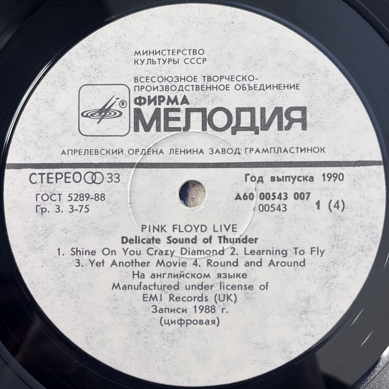 Товар Виниловая пластинка Исполнитель Pink Floyd Наименование Delicate Sound Of Thunder Каталожный номер А60 00543 007 Формат записи Альбом (LP) Количество пластинок 2 Размер пластинки 12" Цвет АЗГ Страна USSR Год записи 1988 год Год издания 1990 год Тип издания Переиздание Особенности Цветной винил -