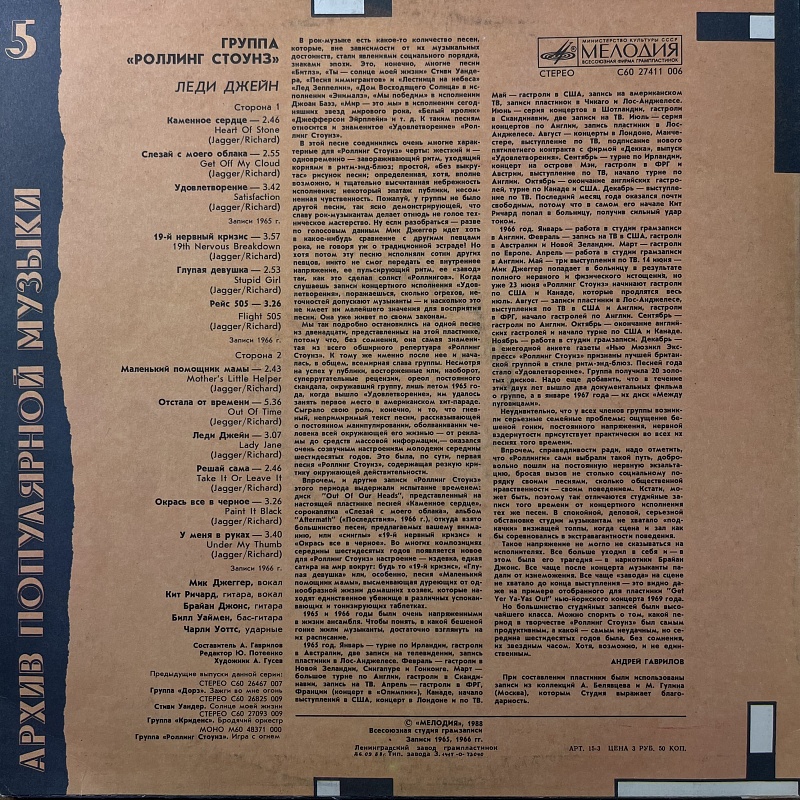 Товар Виниловая пластинка Исполнитель The Rolling Stones Наименование Леди Джейн = Lady Jane Каталожный номер С60 27411 006 Формат записи Сборник Количество пластинок 1 Размер пластинки 12" Цвет Red Labels Страна USSR Год записи 1988 год Год издания 1988 год Тип издания Оригинал Особенности Цветной винил -