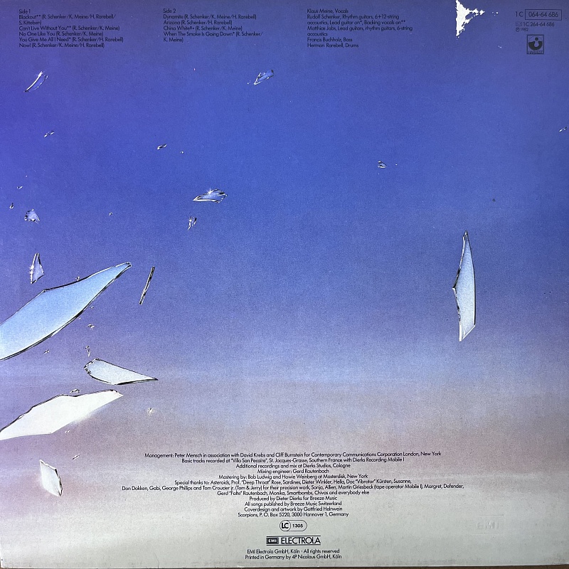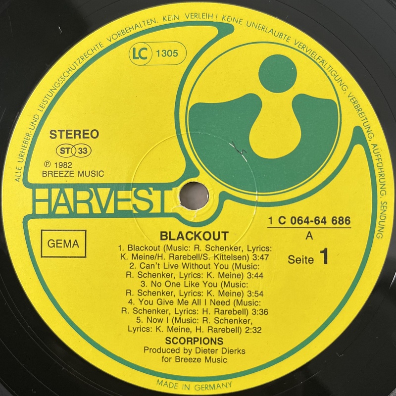 Товар Виниловая пластинка Исполнитель Scorpions Наименование Blackout Каталожный номер 1C 064-64 686 Формат записи Альбом (LP) Количество пластинок 1 Размер пластинки 12" Цвет Black Страна Германия Год записи 1982 год Год издания 1982 год Тип издания Оригинал -