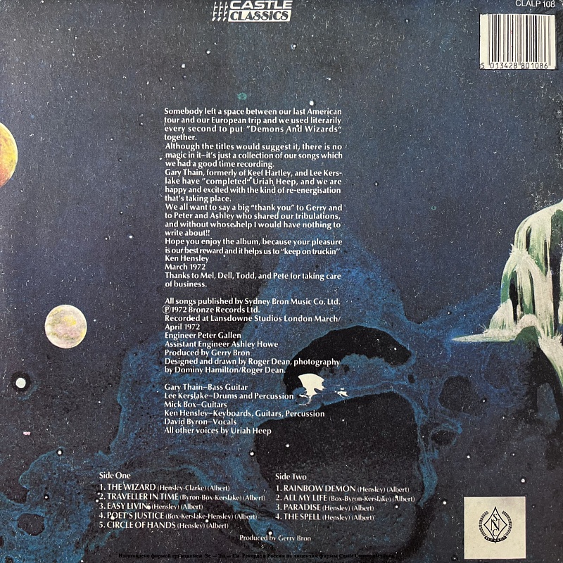 Товар Виниловая пластинка Исполнитель Uriah Heep Наименование Demons And Wizards Каталожный номер ME 2001-2 Формат записи Альбом (LP) Количество пластинок 1 Размер пластинки 12" Цвет Black Страна Россия Год записи 1972 год Год издания 1992 год Тип издания Переиздание -